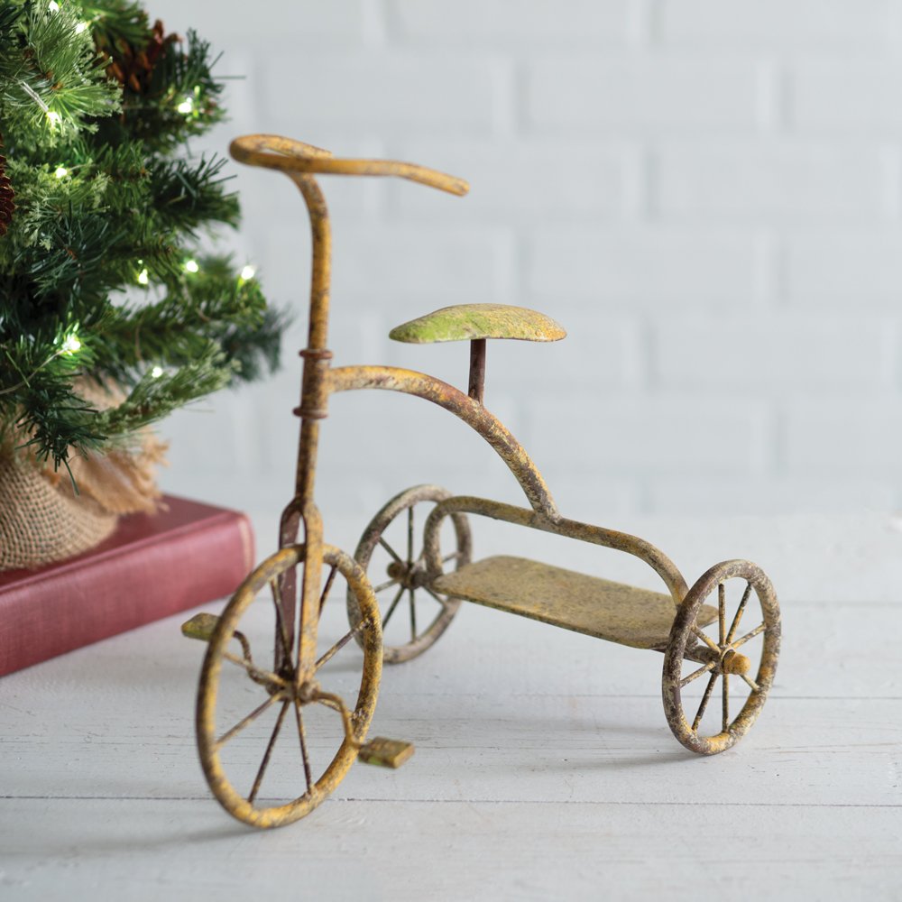 Step back in time with this charming tabletop treasure! Crafted with meticulous attention to detail, this tabletop toy trike exudes the classic charm of a bygone era. Its intricate design and distressed finish make it an instant conversation piece. This item is crafted from metal.