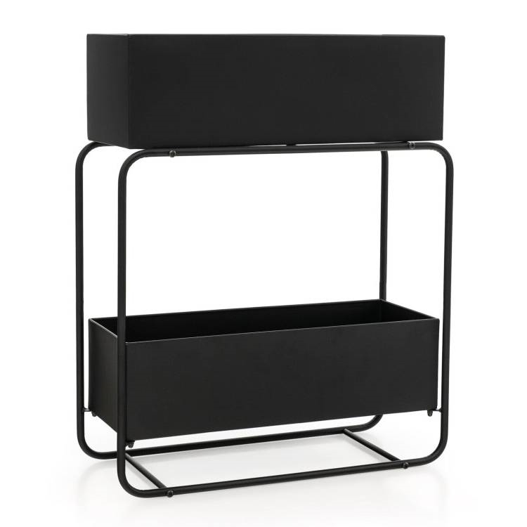 This 2 Tier Black Metal Vertical Garden Planter Box is ideal growing kinds of flowers, vegetables, herbs, etc. Made of sturdy metal and supported by a stable rectangular frame, the raised planter box holder is solid, crack-resistant and not easily deformed. Metal frame features an anti-rust coating to ensure a long lifespan in the outdoors. Featuring smooth lines and rectangular slim boxes, the 2-tier flower box looks simple yet stylish, which blends well into a wide range of indoor and outdoor occasions. And its vertical design is a space solution for small apartments, gardens, balconies, etc.