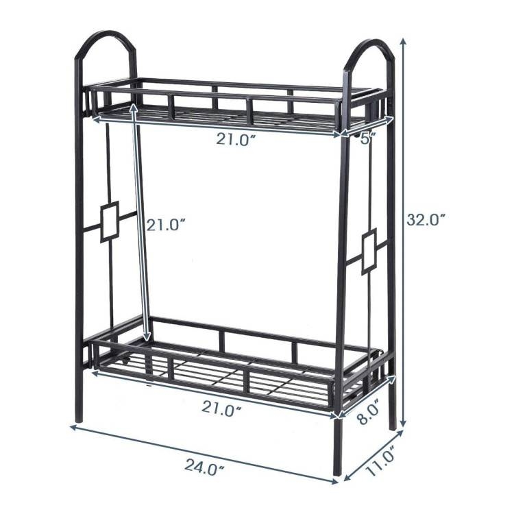 This Rustic Heavy Duty Indoor/Outdoor 2 Tier Plant Stand Planter Shelves is durable, stable, and easy to move. The 2 tiers of shelves provide attractive displays of potted flowers. The black finish and neat design will add an elegant and stunning display to your plants. Suitable for both indoor and outdoor use with contemporary tray design. All weather and water resistant.